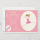 Esse convite de aniversário personalizável apresenta uma pequena bailarina vestindo um tutu cor-de-rosa e um balé rosa deslizante em um plano de fundo cor-de-rosa e creme e um texto personalizável.