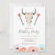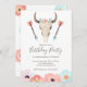 Design com um belo crânio de vaca com flores e penas.