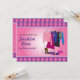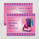 Um convite de festa para a diva da moda que pode trabalhar na passarela como ninguém! Uma estante de roupas e acessórios é apresentada contra um fundo rosa estrelado, enquanto no verso a estante foi esvaziada, deixando apenas cabides vazios. Disponível com produtos correspondentes.