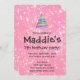 Convite cor-de-rosa Glittery da festa de aniversario de meninas. Inteiramente customizável! Visite nossa loja para ver nossos produtos de coordenação - etiquetas do selo do envelope, etiquetas de endereço e porte postal.