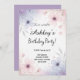 Convites de festas de aniversários de flores roxas da menina.