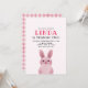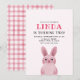 Convite de festa de aniversário da menina com coelho rosa usando óculos cor-de-rosa. VOCÊ PODE REMOVER OS ÓCULOS! Parte traseira com padrão xadrez.