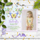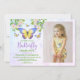 Convites de festas de aniversários de moça de borboleta doce e de verão. Apresentando um belo bando de flores aquáticas e borboletas pastéis mais a foto da aniversariante ao lado de todos os detalhes da festa.