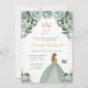 Este elegante e glamouroso convite de aniversário apresenta uma bela princesa com cabelo louro num vestido verde-sábio de bola. O texto combina o script manuscrito e as fontes sans serif modernas para um aspecto elegante e sofisticado. Os arranjos florais, borboletas e confete de ouro criam a mistura perfeita de rústicos e quicos. Gráficos por www.etsy.com/uk/shop/SunflowerDayLove
