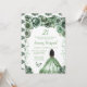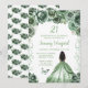 Este elegante e glamouroso convite de aniversário apresenta uma bela princesa com cabelo castanho e pele escura num vestido verde-sábio. O texto combina o script manuscrito e as fontes sans serif modernas para um aspecto elegante e sofisticado. Os arranjos florais, borboleta e confete criam a mistura perfeita de rústico e chic. Gráficos por www.etsy.com/uk/shop/SunflowerDayLove