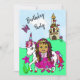 Uma princesa temida rosa bonito, unicórnio e conto de fadas de castelos, convite de aniversário temático. A menina tem uma pele castanha e cabelo encaracolado preto e roxo para representar uma garota hispânica ou afro-americana. Avise-nos se você tem algum pedido de Nacionalidade, cabelo ou cor do olho. <3