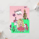 Uma princesa temida rosa bonito, unicórnio e conto de fadas de castelos, convite de aniversário temático. A menina tem uma pele justa e cabelos loiros para representar uma garota caucasiana.