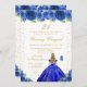 Este elegante e glamouroso convite de aniversário apresenta uma bela princesa com cabelo loiro e pele de leão em um vestido azul real de bola. O texto combina o script manuscrito e as fontes sans serif modernas para um aspecto elegante e sofisticado. Os arranjos florais, borboletas e confete de ouro criam a mistura perfeita de rústicos e quicos. Gráficos por www.etsy.com/uk/shop/SunflowerDayLove