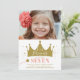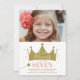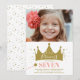 Um convite caprichoso e fofo de festa de aniversário de princesa com uma coroa dourada com estrelas cintilantes, varinha listrada e texto editável. Destaque o nome da sua pequena princesa dentro da coroa mágica, se preferir, com o elemento da varinha móvel apontando para a idade. Vem com parte de trás de padrão coordenado. Clique em editar para personalizar a imagem e o texto.