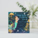 Convite de festa de aniversário de sereia com adorável sereia com tiara de diamante e pérola em um belo fundo azul e dourado brilhante do fundo do mar. Este convite de festa de aniversário de sereia debaixo do mar é facilmente personalizado para o seu evento, basta adicionar seus detalhes no estilo de letra, cor e texto de sua escolha. este é um design impresso sem jóias reais, laços, brilho, etc.
