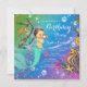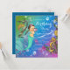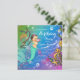 Convite de festa de aniversário de sereia com adorável sereiazinha com tiara de diamante e pérola em um lindo fundo submarino verde, rosa, azul e dourado brilhante. Este convite de festa de aniversário de sereia é facilmente personalizado para o seu evento, basta adicionar seus detalhes no estilo de letra, cor e redação de sua escolha. este é um design impresso sem jóias reais, laços, brilho, etc.