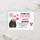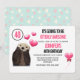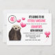 Um convite de festa de aniversário de namorado com um esquema de cores preto e rosa. Ilustrado com uma foto de uma lontra fofa com corações flutuando de sua mente. Os corações são rosa e parecem rechonchudos com um reflexo brilhante. Um pequeno balão em forma de coração com uma fita ao lado. O texto da sua festa começa com as palavras "Vai ser absolutamente incrível.... personalize com os detalhes da sua festa.