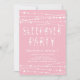 Festa de aniversário de sono com uma fonte de estrela cintilante colocada sobre um fundo cor-de-rosa adornada com uma estrela branca. Sacudir nosso convite moderno para ver uma coordenação de volta para um toque especial extra.
