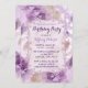 Esta adorável Convite de aniversário tem um tema floral feminino bonito em profundo roxo a maconha suave com tom de rosa. Todo o texto está pronto para ser personalizado com as informações do Partido. A placa de volta tem design correspondente.