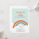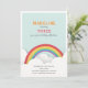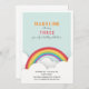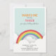 Um tema de aniversário do arco-íris com ilustração de um arco-íris e céu azul.