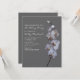 Um convite de aniversário adulto moderno, sofisticado, em papel metálico, com uma imagem de orquídeas bem sobre um fundo de cinza escuro. Personalize o texto branco à esquerda com detalhes da sua ocasião.
