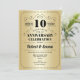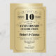 Convite de Aniversário de 10 Anos de Casamento. Cartão de convite dourado e preto. Perfeito para uma celebração elegante. Pode ser personalizado para qualquer ano.