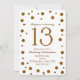 Convites de Festa de Aniversário de 13 anos Sweet com Pontos de Brilho Branco e Dourado.
