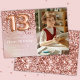 Convite de aniversário rosa de 6 de ouro elegante para uma menina de 13 anos com roteiro elegante escrevendo e balões de folha de papel divertida.