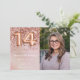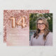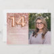 Foto elegante convite de aniversário de ouro rosa para uma garota de 14 anos com escrevendo elegante de roteiro e balões de folha divertida.
