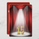 Convite de aniversário de 15 anos de casamento com holofote e números dourados.