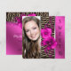 Convite de aniversário de dezesseis anos elegante e cor-de-rosa para festas temáticas de zebra. Este convite de aniversário colorido cor-de-rosa é facilmente personalizado para o seu evento, bastando clicar no botão "Personalizar!" para começar a adicionar os detalhes do evento, o estilo da fonte, o tamanho e a cor da fonte e o texto. Por favor, observe que todos os desenhos de convites que você encontrará na Zazzle são gráficos impressos em papel simples sem joias, laços, relevos, rebaixos ou peças ou partes adicionais.
