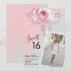 Bonito convite de aniversário Sweet 16 com rosas elegantes, fundo cor-de-rosa com borrão e letra elegante de caligrafia. Carregue sua foto favorita.