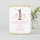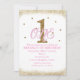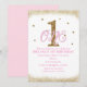 Convite de Festa de Aniversário de 1 Ano das Meninas Rosa e Dourado.