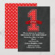 Convites de Festa de Aniversário de 1 Um 1º Ano com Pontinhos Vermelhos e Brancos.
