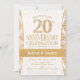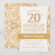 Convite de festa de aniversário de casamento de 20 anos em branco e dourado.