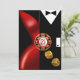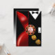 Um sofisticado casal art déco vestido com trajes de gala - ela com um vestido vermelho decotado e ele elegante num smoking preto. O centro da peça é uma ficha de cassino onde você pode inserir a data de aniversário ou o nome - e dados dourados caindo. Este convite versátil e moderno é perfeito para qualquer ocasião especial - festas de aposentadoria, aniversários marcantes, coquetéis e jantares, jantares de ensaio, recepções de casamento, aniversários de casamento, eventos semi-formais e formais ou festas de feriados. Fácil de personalizar, use o botão "Personalizar" acima para adicionar seu próprio texto. Adesivos de favor também disponíveis. Para perguntas ou pedidos especiais, por favor entre em contato com o designer em cheryl@cheryldanielsart.com. Se este convite não é exatamente o que você está procurando, todos os meus produtos podem ser personalizados para atender às suas necessidades específicas. Convite "Festa de Aniversário do Cas