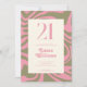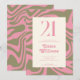 Retro 70s - Convite para aniversário de 21 anos Groovy. Padrões de espiral coloridos. Personalize todo o texto neste design para convites de aniversário de 21 anos personalizados.