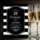 Convite de festas de aniversário de 21 anos listrado preto e branco. O texto é totalmente personalizável para permitir que você inclua todas as suas próprias informações para a celebração de aniversário.