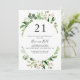 Este simples convite de festas de aniversário de 21 anos floral marrom de eucalipto é perfeito para uma celebração de aniversário moderna. A design apresenta lindas folhas verdes de eucalipto pintadas artesanalmente, dispostas em formas geométricas, inspirando beleza natural.