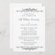Convites de festa de aniversário de 25 anos com redemoinhos prateados e brancos.