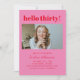 Este convite de aniversário é perfeito para uma festa de 30 anos com uma grande foto e design ousado em rosa e vermelho. Personalize o nome, data, hora, local e detalhes de RSVP para se adequar à sua celebração. Ótimo para uma noite divertida entre garotas, festa de cocktails ou aniversário marcante. O fundo rosa brilhante e layout simples mantêm o foco na aniversariante.
