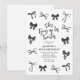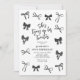 Faça do seu aniversário um evento inesquecível com nossos convites de aniversário de 30 anos Coquette. Esses convites são lindamente projetados com laços de água preta estilizados e um modelo de texto elegante, incluindo o título "ela está amarrando os vinte"