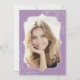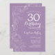 convite de festas lavanda floral roxo aniversário de 30 anos com sua foto na parte traseira da placa. Elegante design moderno com desenhos botânicos desenhados em destaque e letra de script de tipografia. Simples trendy convida cartão perfeito para uma festa de na moda. Pode ser personalizado para qualquer idade. Impressos convites Zazzle ou modelo de impressão digital instantânea para download.