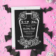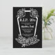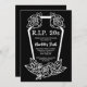 Convite de aniversário dos anos 20 para comemorar o aniversário de 30 anos de uma mulher. Design preto com letras brancas, um caixão, rosas e as palavras "morte da juventude". Personalize-o com os detalhes do seu partido e as informações de RSVP.