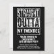 Adicione seus detalhes de texto e evento ou festa de aniversário a esta placa de convite de festas aniversário de 30 anos. Hetero fora do seu ano de nascimento, idade, quarenta, trinta, anos 50, etc. Ou personalize sua cidade, estado, profissão, emprego, escola ou qualquer coisa! O que você está representando? Adicione sua cidade, estado ou outras informações pertinentes a um esfregão personalizado no estilo de rua angustiado "hetero outta" ou hetero de presente em texto branco e preto.