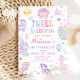 Convite de festas aniversário de 3 anos do Dinossauro Rosa Três A-Saurus