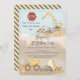 Criado com uma paleta menos tradicional, com aquarela, este design do Partido aniversário de 3 anos apresenta um caminhão de lixo e uma escavadora de backhoe em um local de construção com a legenda "Stop the Traffic and Close the Roads for" (Interromper o Tráfego e Fechar as Estradas para), no aniversário do seu filho. O palete mutado continua atrás com uma cinza de carvão e um padrão estriado diagonal amarelo mais suave. Design composto por Holiday Hearts Design (direitos reservados).