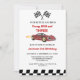 O tema do carro de corrida é adorável. Nosso pequeno carro é jovem e selvagem, e o cartão de convite para aniversário de 3 anos de assistência a carros tem um carro antigo vermelho com chamas.