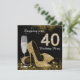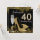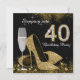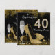 Convite de festa de aniversário de 40 anos preto e dourado com taça de champanhe elegante e sapatos de salto alto dourados. Você pode personalizar facilmente este convite de festa de aniversário de 40 anos preto e dourado para o seu evento, simplesmente adicionando seus detalhes no estilo de fonte e cor, e na redação de sua escolha. Você também pode alterar a cor do fundo.