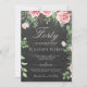 Policial elegante 40 festas de aniversário de convite feminino, com pincel rosa e vermelho, pintado com rosas de pedras com folhas verdes e folhagem, e com uma trendente escrita caligráfica gravada manualmente e editável sobre um fundo de caligrafia de carvão de cinza escura. +++++++++ Adequado para primavera, jardim de verão ou outono / quintal exterior / aniversário floral de vintage / aniversário / festa de comemoração .
