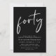 Chic black ITE para sua festa de aniversário de 40 anos com "quarenta" em um roteiro branco-na moda, seu nome em uma elegante tipografia serif branca e os detalhes da festa em simples e moderna inscrição branca.