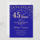Convite de Celebração de Aniversário de 45 anos Safira Azul Dourado.