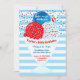 Este convite divertido e divertido apresenta um sundae com amostras de sorvete em cinzas vermelho-claro, azul-escuro e claro com aspersores. O fundo tem faixas azuis e brancas. O texto combina fontes em negrito e sans serif para uma aparência na moda e moderna. Isto é perfeito para uma festa de aniversário do 4 de julho.