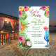 Celebre os 50 anos do seu ente querido com uma festa temática tropical usando nossos convites de aquarela deslumbrantes. Com flores havaianas, coco e um coquetel contra um fundo claro, o design irradia energia vibrante. "Vamos Festejar" e "50" em letra cursiva elegante definem o tom festivo, enquanto o verso promete "Comer, Beber, Dançar". Personalize facilmente todos os detalhes em uma fonte serifada clássica para criar o convite perfeito. Comece a planejar uma festa de 50 anos inesquecível hoje mesmo – encomende seus convites personalizados agora!