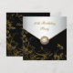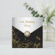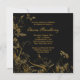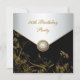 Convite de festa de aniversário de cinquenta anos para mulher com sobreposição de flores pretas e douradas e acabamento em joia de pérola.